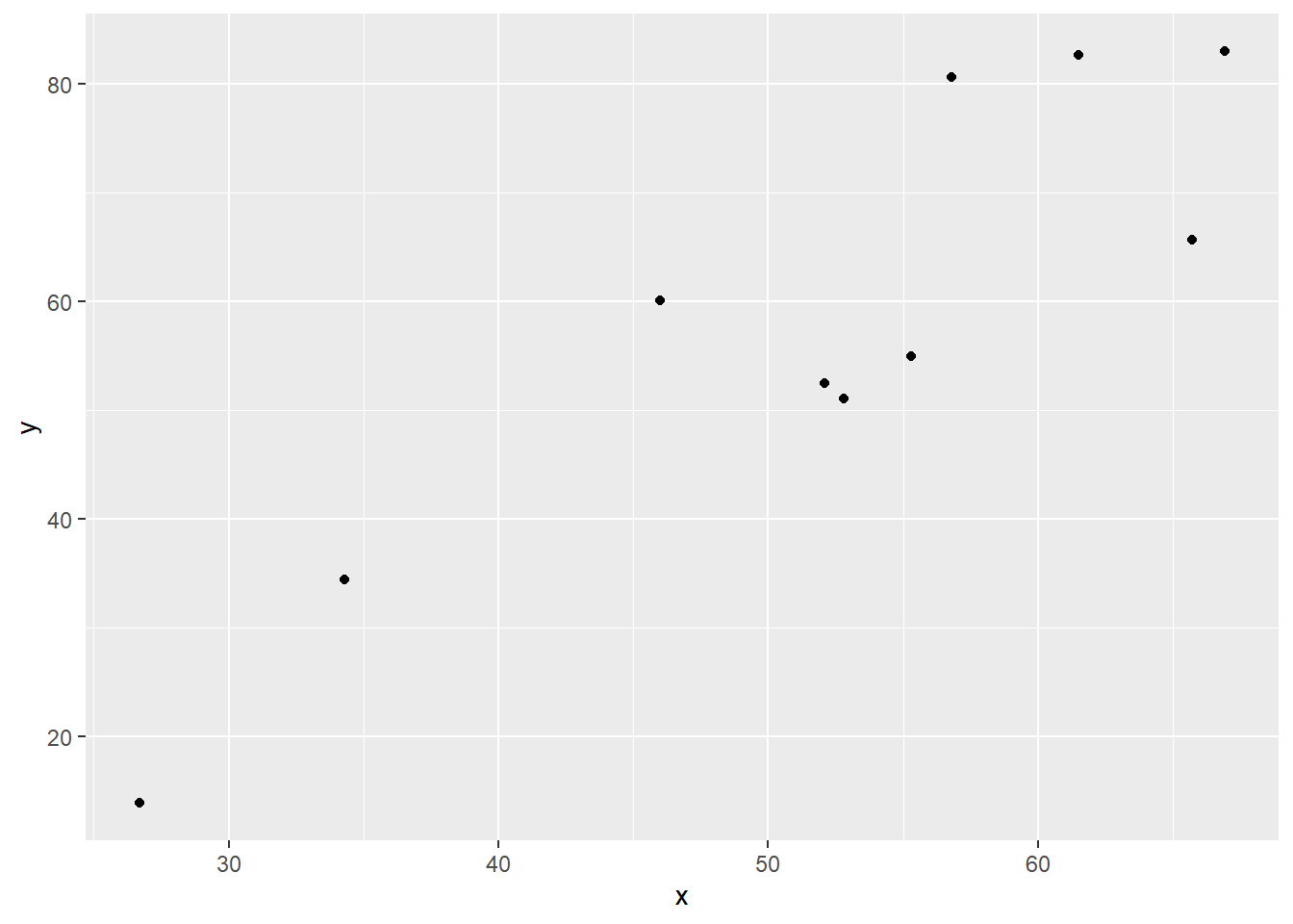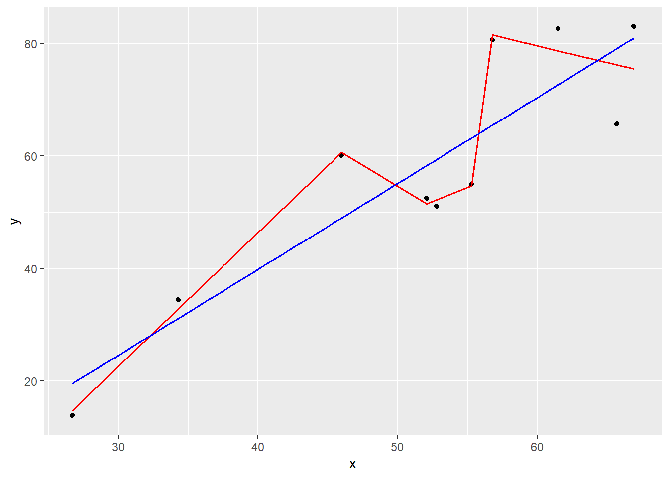 Spørsmålet nå er ikke hvor godt modellen passer til disse dataene, men hvordan den passer til nye data! Altså fremtidige data eller fremtidig situasjon. La oss si at vi har et datasett som kan plottes om følger: