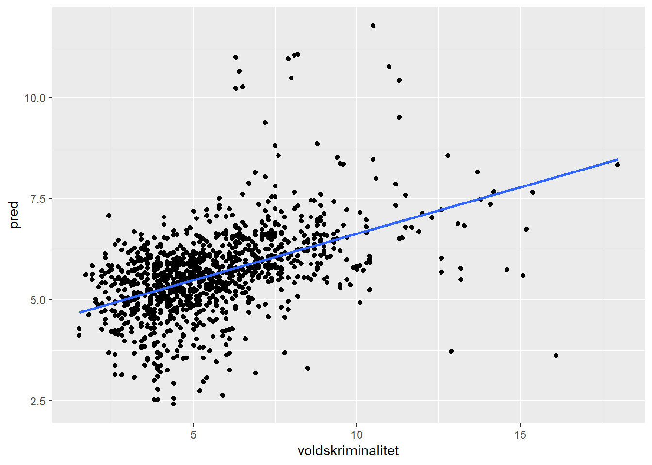 ggplot(kom, aes(x = voldskriminalitet, y = pred)) +